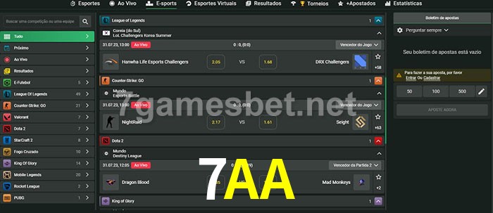 A aposta 7AA oferece aos jogadores a experiência mais conveniente de apostas em eSports!